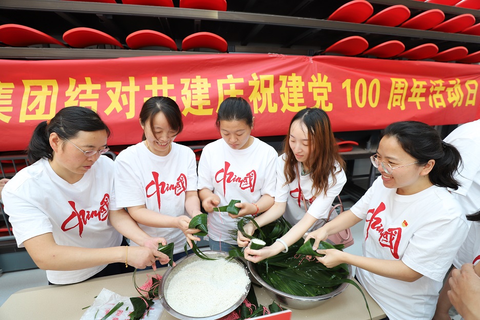 活動為展示項目風采的優(yōu)秀攝影、先進臨時黨支部、黨員示范崗進行頒獎,并觀看《厲害了,我的國》經(jīng)典片段;全體黨員重溫入黨誓詞,高舉右手莊嚴宣誓;籃球友誼賽活動現(xiàn)場,球員們團結(jié)協(xié)作,奮勇拼搏;包粽子比賽活動現(xiàn)場,大家歡聲笑語,其樂融融。