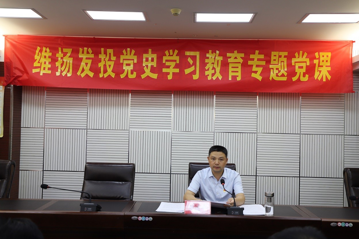 6月29日下午,維揚(yáng)發(fā)投黨支部書記、董事長(zhǎng)劉迪平在公司會(huì)議室,以“回望百年黨史 共慶百年華誕”為主題為公司全體黨員干部職工上了黨史學(xué)習(xí)教育專題黨課。 劉迪平指出,在全黨開展黨史學(xué)習(xí)教育,是牢記初心使命、推進(jìn)中華民族偉大復(fù)興歷史偉業(yè)的必然要求,是堅(jiān)定信仰信念、在新時(shí)代堅(jiān)持和發(fā)展中國(guó)特色社會(huì)主義的必然要求,是推進(jìn)黨的自我革命、永葆黨的生機(jī)活力的必然要求。 劉迪平強(qiáng)調(diào),作為黨員、作為國(guó)企人,要把學(xué)習(xí)黨史同總結(jié)經(jīng)驗(yàn)、對(duì)照現(xiàn)實(shí)、推動(dòng)工作結(jié)合起來(lái),立足新發(fā)展階段、貫徹新發(fā)展理念、構(gòu)建新發(fā)展格局,永葆“闖”的精神、“創(chuàng)”的勁頭、“干”的作風(fēng),以只爭(zhēng)朝夕、奮發(fā)有為的精神狀態(tài),持續(xù)催生發(fā)展新動(dòng)能、釋放發(fā)展新潛力、創(chuàng)造發(fā)展新優(yōu)勢(shì),奮力開創(chuàng)公司高質(zhì)量發(fā)展新局面。